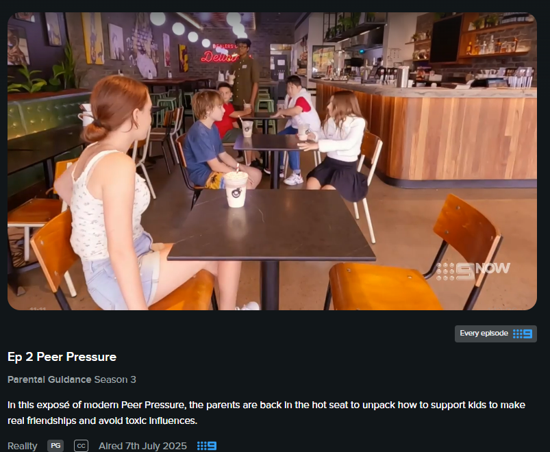 Carmela Karipis | Eureka Productions (a Fremantle company) | Channel 9 – Parental Guidance Season 3, Episode 2 ‘Peer Pressure’