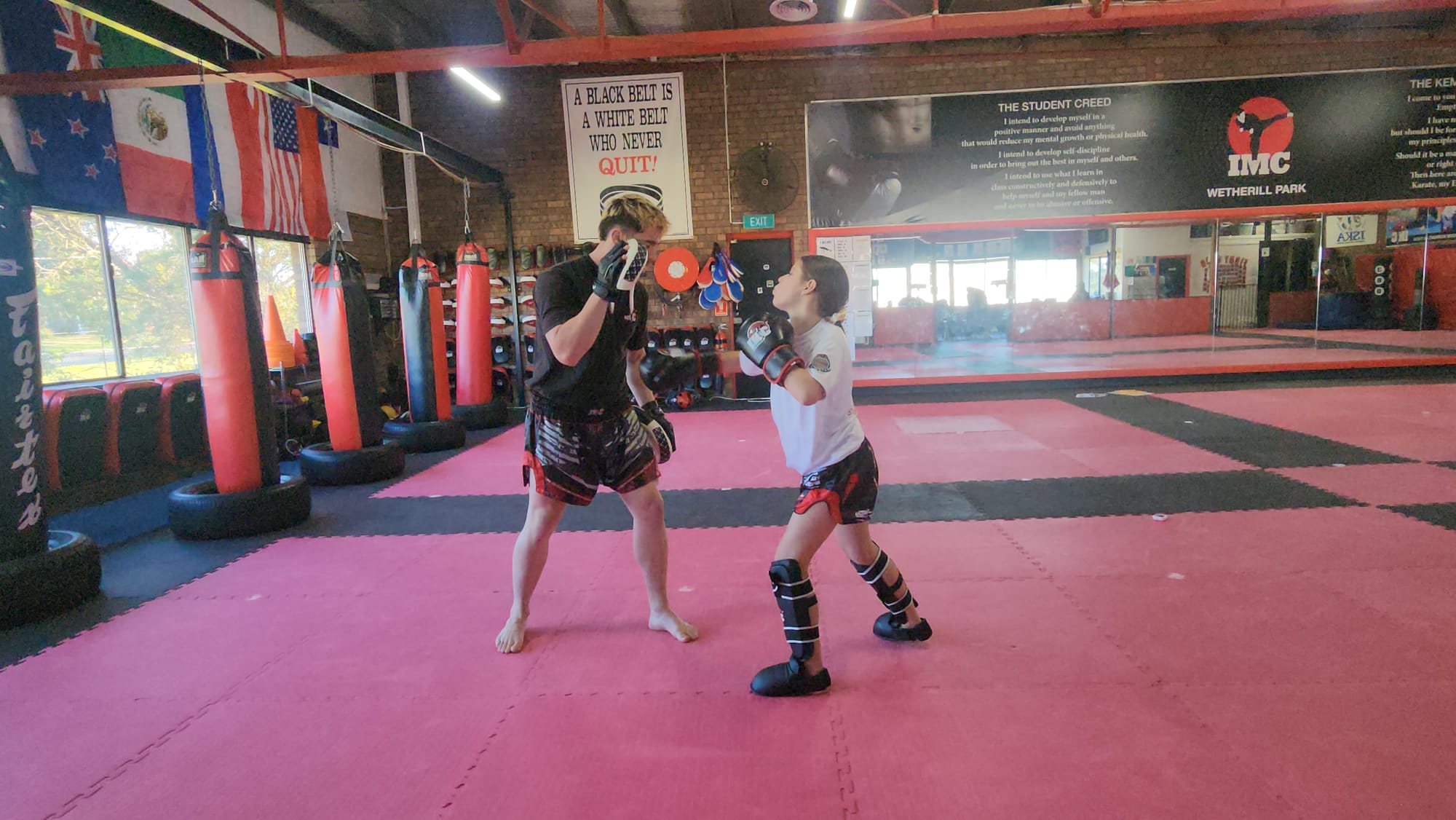 Carmela trains in both Karate and Kickboxing through private lessons at IMC Wetherill Park Martial Arts Centre with Sensei Liam, focusing on strength, discipline, coordination, and confidence.
